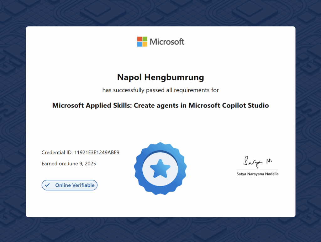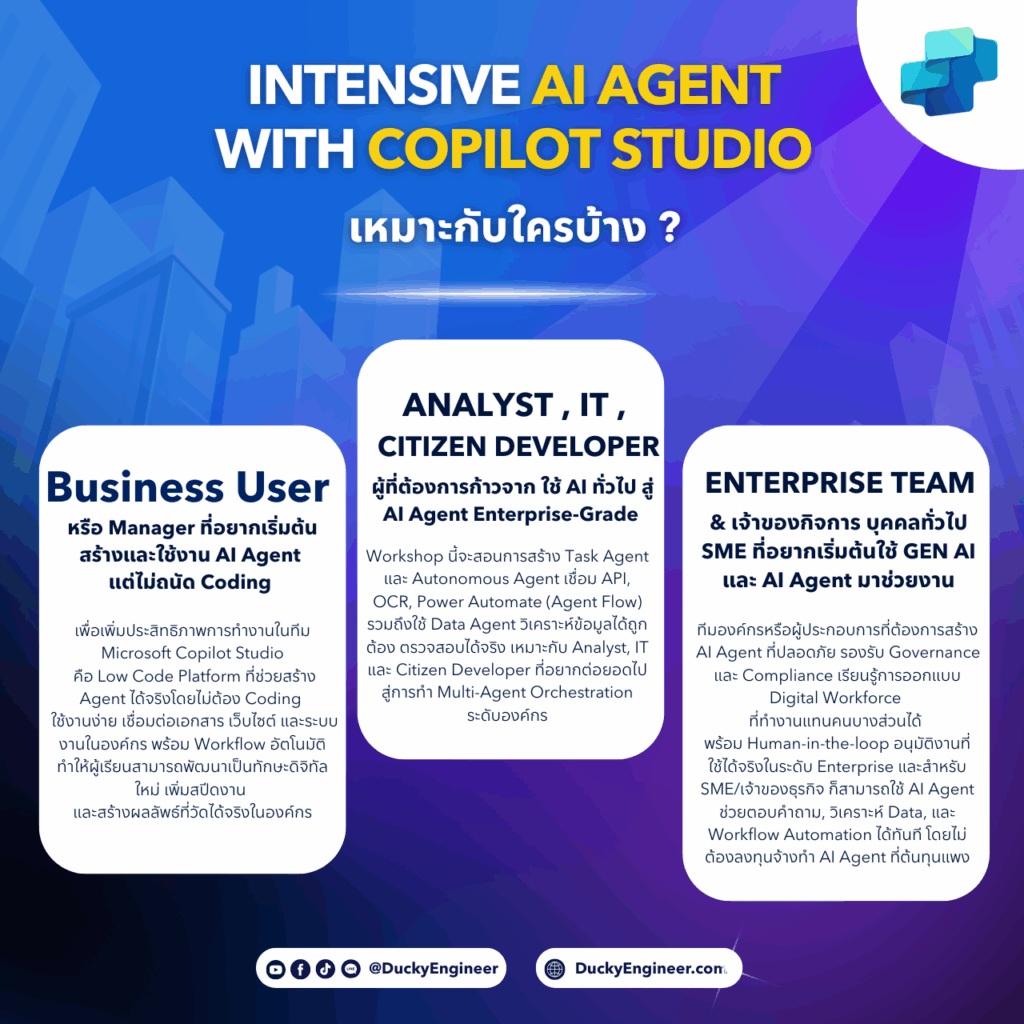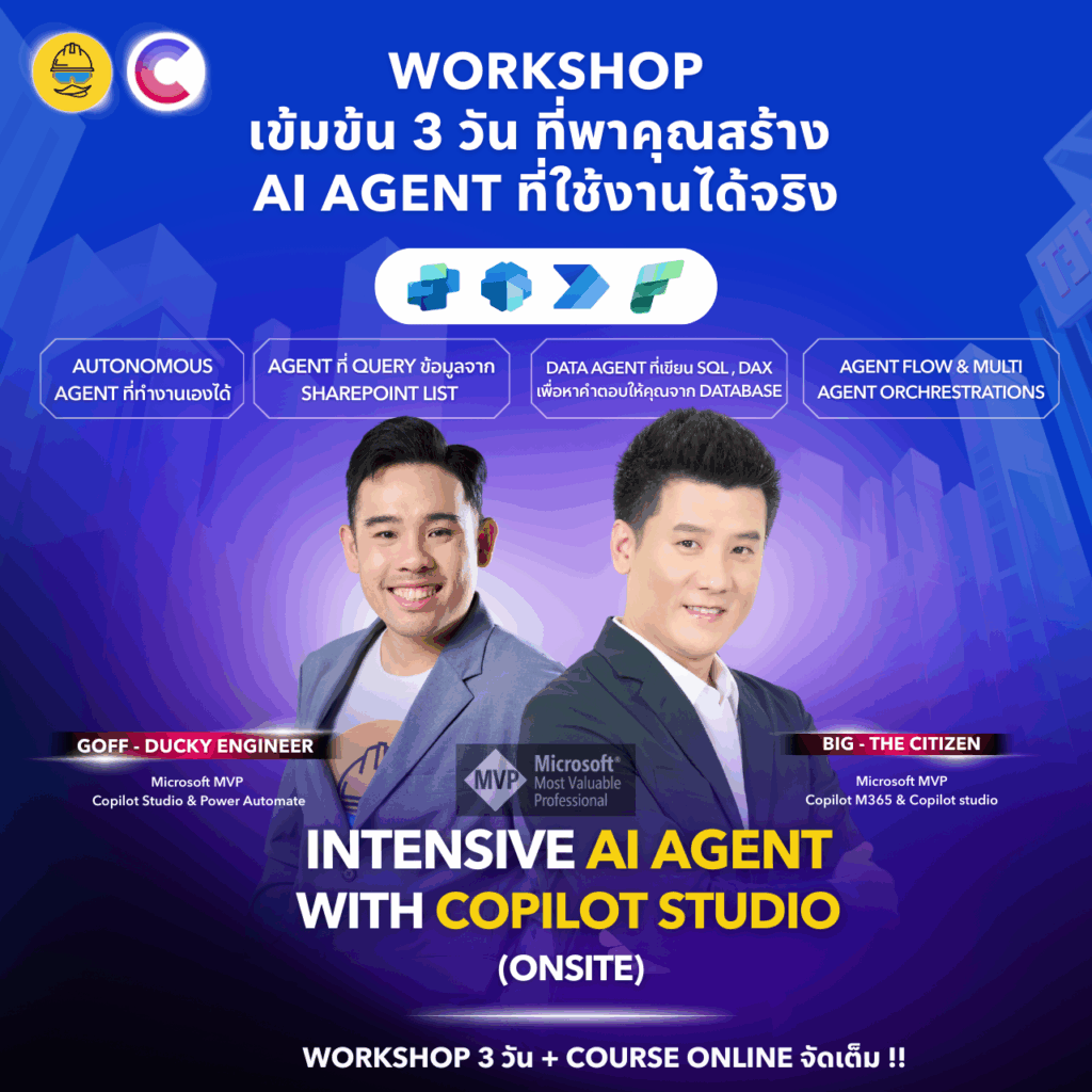 - เรียนกับ Microsoft MVP Copilot Studio ตัวจริง — ผู้เชี่ยวชาญระดับประเทศเพียง 2 คนในไทย