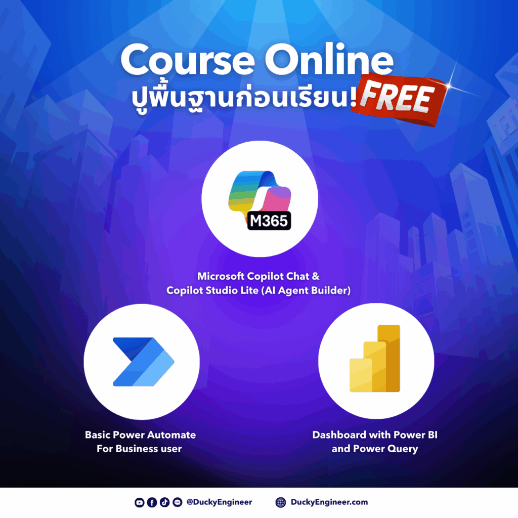 - แถมฟรี Online Course ปูพื้นฐาน(Microsoft Copilot Chat & AI Agent Builder, Power Automate & Power BI) และติวสอบ Microsoft Certification อีก 3 ใบ มูลค่ากว่า 21,200 บาท