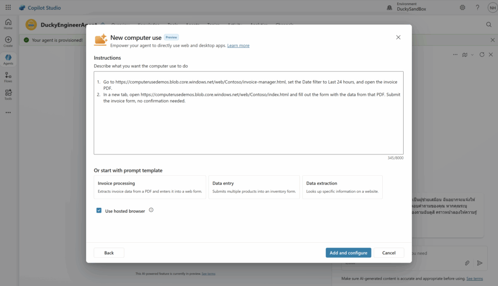 - ฝึกเชื่อมต่อแหล่งความรู้ (Docs, SharePoint, Database, API, Website, Legacy App) + การใช้ Computer Use Tools